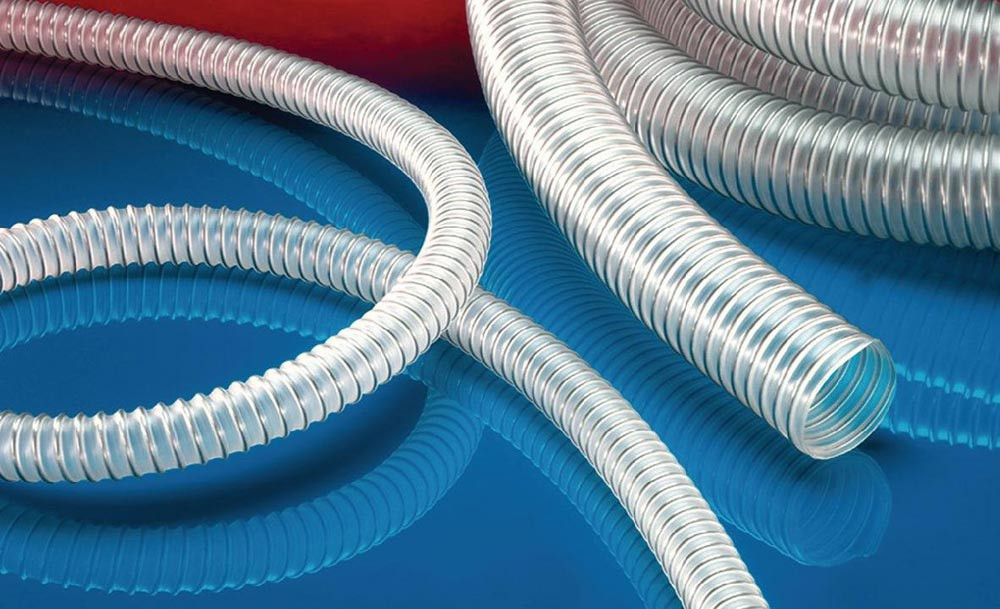 Anwendungen: flexibler Schlauch für hohen Durchsatz an abrasivem Pulver, Schüttgut, Granulat und für Gase, Förderung von trockene und gefrorenen Lebensmittel und Pharmazeutika, Vakuum- und Saugförderer, Dosiersystem, Tablettenpresse, Mischer, Trockner, Verpackungsmaschine, Big-Bag Befüllung/Entleerung, Mühle, Industrie- und Staubsauger, explosionsgefährdeter Bereich, Tierstall: Futtermittelförderung, -anlage und -transport