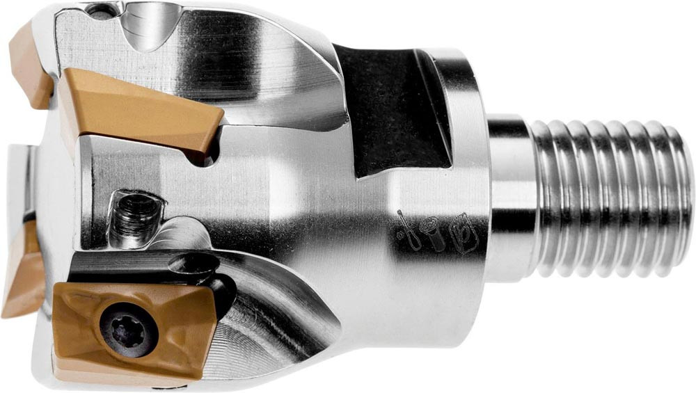 Eckfräser mit positiver/negativer Geometrie zum spannen von 4 Stück ADMX 1606.. oder ADEX 1606.. einseitigen Wendeschneidplatten · Schnittdurchmesser 40mm mit 90° Anstellwinkel und M16 Gewindeschaft für modulare Standardhalter · 43mm Überstandslänge · Kühlkanalbohrung zum Kopierfräsen · flachen Schulterfräsen · flachen Nutfräsen · Rampen · Helikalen Fräsen · Tauchfräsen und progressiven Eintauchen mit einer maximalen Schnitttiefe von 13.0mm
