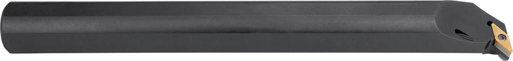 Dreh-Bohrstange mit Schraubklemmung zum spannen von 35° Rhombus positive Wendeschneidplatten mit einem Innenkreisdurchmesser von 6.35mm · 3.18mm Dick (ISO Bezeichnung VB.. 1103.. ) · linke Ausführung zum 93° Längsdrehen mit abgesetzem Schaft · Stahl mit Kühlkanalbohrung · 16mm Durchmesser x 200mm Länge für Kopierdrehen in einer und mehreren Richtungen und Rückwärtsentgraten