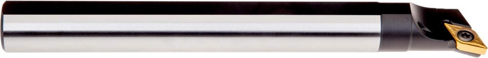 Dreh-Bohrstange mit Schraubklemmung zum spannen von 55° Rhombus positive Wendeschneidplatten mit einem Innenkreisdurchmesser von 9.525mm · 3.97mm Dick (ISO Bezeichnung DC.. 11T3.. ) · linke Ausführung zum 107°30' Längsdrehen mit abgesetzem Schaft · Stahl mit Kühlkanalbohrung · 32mm Durchmesser x 250mm Länge für Innenkegeldrehen und Längsdrehen mit und ohne Schulter
