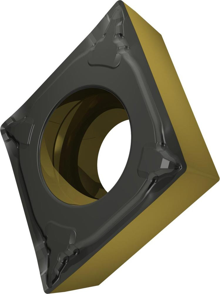 Einseitige positive Drehwendeschneidplatte · 80° Rhombisch mit 7° Freiwinkel · Innenkreisdurchmesser von 12.7mm · 4.76mm Dick · 0.4mm Radius · Indexgenauigkeit nach ISO-Toleranzklasse-M · Spanbrecher UR mit verrundeter Schneidkante · im Substrat T9415 · MT-CVD beschichtet WC-Co Substrat im ISO-Bereich P05 -P30 · zum schlichten bis schruppen bearbeiten von Stählen