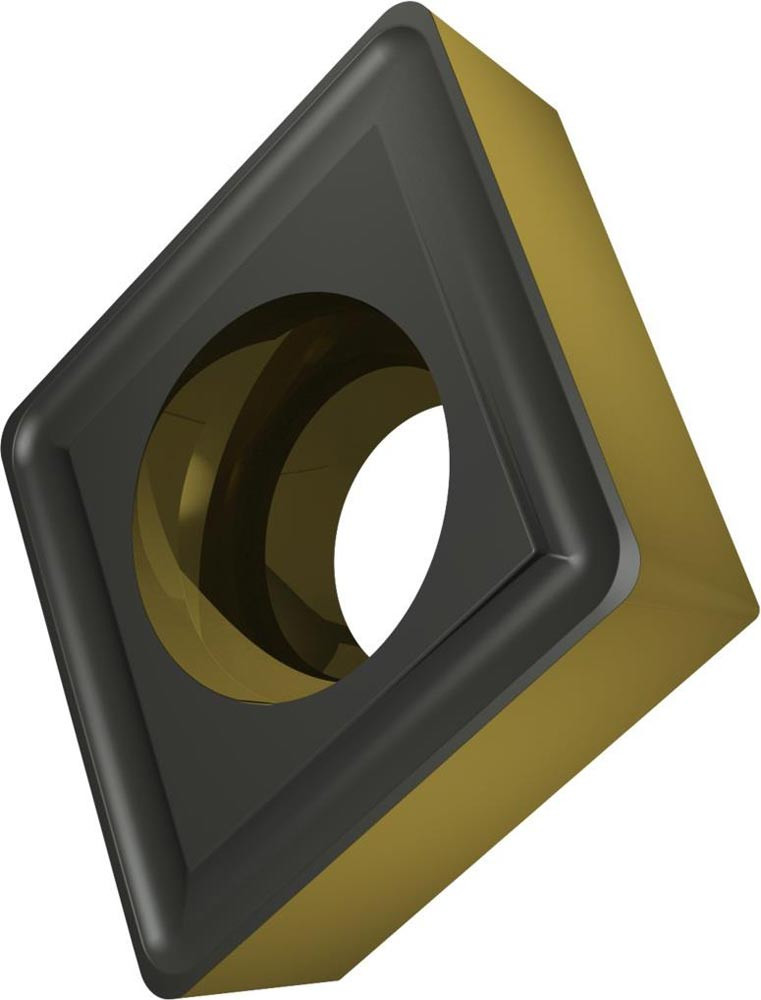 Einseitige positive Drehwendeschneidplatte · 80° Rhombisch mit 7° Freiwinkel · Innenkreisdurchmesser von 12.7mm · 4.76mm Dick · 0.8mm Radius · Indexgenauigkeit nach ISO-Toleranzklasse-M · Spanbrecher RM3 mit verrundeter Schneidkante · im Substrat T9415 · MT-CVD beschichtet WC-Co Substrat im ISO-Bereich P05 -P30 · zum schlichten bis schruppen bearbeiten von Stählen