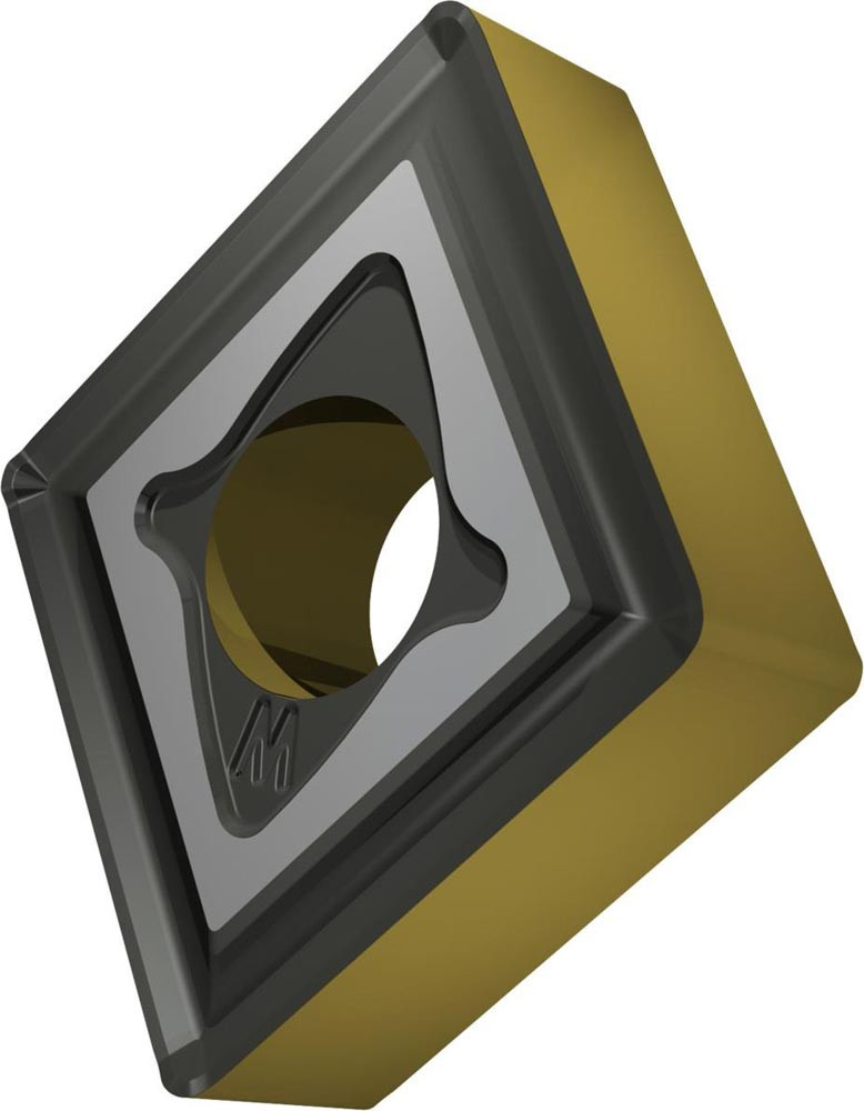 Doppelseitige negative Drehwendeschneidplatte · 80° Rhombisch mit Innenkreisdurchmesser von 12.7mm · 4.76mm Dick · 0.8mm Radius · Indexgenauigkeit nach ISO-Toleranzklasse-M · Spanbrecher MR mit Wiper-Geometrie · im Substrat T9415 · MT-CVD beschichtet WC-Co Substrat im ISO-Bereich P05 -P30 · zum medium bis schruppen bearbeiten von Stählen