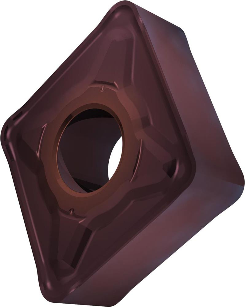 Doppelseitige negative Drehwendeschneidplatte · 80° Rhombisch mit Innenkreisdurchmesser von 15.575mm · 6.35mm Dick · 1.6mm Radius und Indexgenauigkeit nach ISO-Toleranzklasse-M · Spanbrecher NRM · im Substrat T8430 · PVD beschichtet WC-Co Feinkornsubstrat in den ISO-Bereichen P20 -P40 und M20 -M35 · zum medium bis schruppen bearbeiten von Stählen und nichtrostenden Stählen