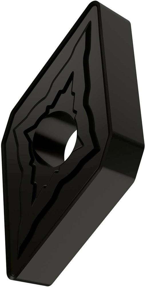Doppelseitige negative Drehwendeschneidplatte · 55° Rhombisch mit Innenkreisdurchmesser von 9.525mm · 4.76mm Dick · 0.4mm Radius · Indexgenauigkeit nach ISO-Toleranzklasse-M · Spanbrecher NMR mit verrundeter Schneidkante · im Substrat T9325 · MT-CVD beschichtet functionally graded WC-Co carbide in den ISO-Bereichen P15 -P35 und M10 -M30 · zum schlichten bis schruppen bearbeiten von Stählen und nichtrostenden Stählen