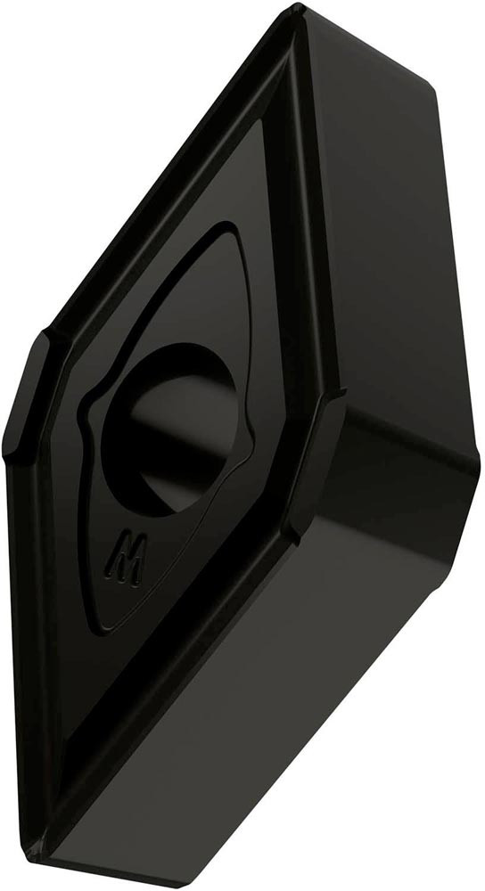 Doppelseitige negative Drehwendeschneidplatte · 55° Rhombisch mit Innenkreisdurchmesser von 12.7mm · 6.35mm Dick · 1.2mm Radius · Indexgenauigkeit nach ISO-Toleranzklasse-M · Spanbrecher MR mit Wiper-Geometrie · im Substrat T9325 · MT-CVD beschichtet functionally graded WC-Co carbide im ISO-Bereich P15 -P35 · zum medium bis schruppen bearbeiten von Stählen