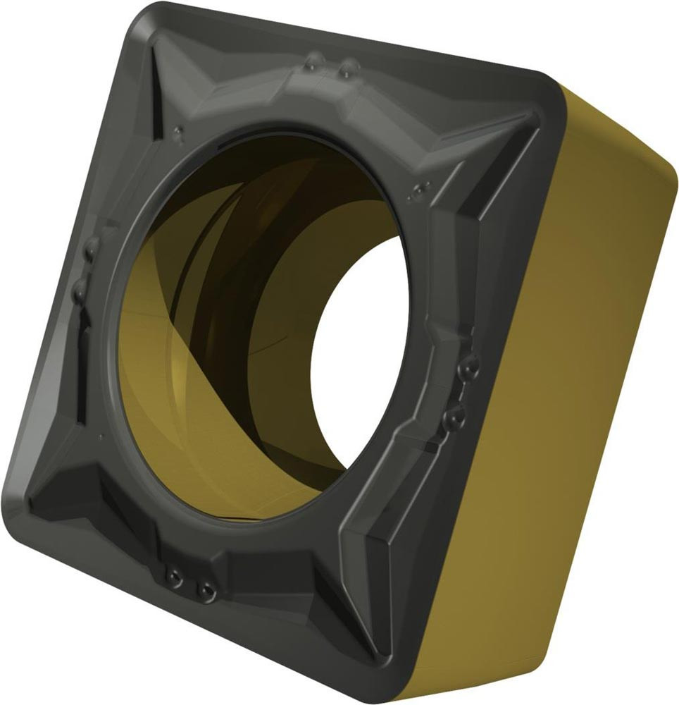 Einseitige positive Drehwendeschneidplatte · Viereckig mit 7° Freiwinkel · Innenkreisdurchmesser von 9.525mm · 3.97mm Dick · 0.8mm Radius · Indexgenauigkeit nach ISO-Toleranzklasse-M · Spanbrecher FM mit verrundeter Schneidkante · im Substrat T9415 · MT-CVD beschichtet WC-Co Substrat im ISO-Bereich P05 -P30 · zum schlichten bis medium bearbeiten von Stählen