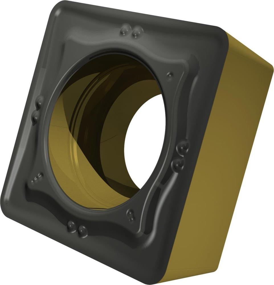 Einseitige positive Drehwendeschneidplatte · Viereckig mit 7° Freiwinkel · Innenkreisdurchmesser von 9.525mm · 3.97mm Dick · 0.8mm Radius · Indexgenauigkeit nach ISO-Toleranzklasse-M · Spanbrecher RM mit verrundeter Schneidkante · im Substrat T9415 · MT-CVD beschichtet WC-Co Substrat im ISO-Bereich P05 -P30 · zum schlichten bis schruppen bearbeiten von Stählen
