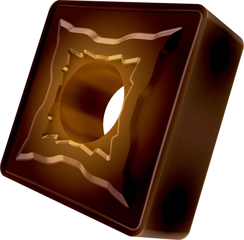 Doppelseitige negative Drehwendeschneidplatte · Viereckig mit Innenkreisdurchmesser von 12.7mm · 4.76mm Dick · 0.8mm Radius · Indexgenauigkeit nach ISO-Toleranzklasse-M · Spanbrecher NMR mit verrundeter Schneidkante · im Substrat T8430 · PVD beschichtet WC-Co Feinkornsubstrat in den ISO-Bereichen P20 -P40 und M20 -M35 · zum schlichten bis schruppen bearbeiten von Stählen und nichtrostenden Stählen