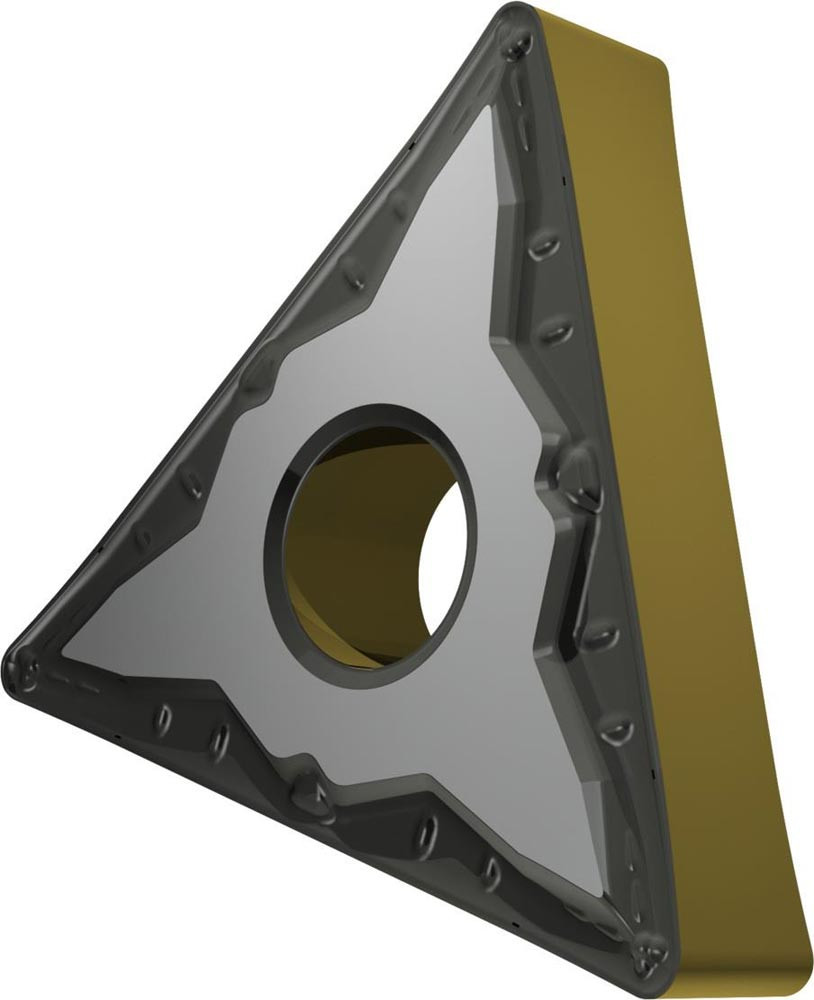 Doppelseitige negative Drehwendeschneidplatte · Triangular mit Innenkreisdurchmesser von 12.7mm · 4.76mm Dick · 0.8mm Radius · Indexgenauigkeit nach ISO-Toleranzklasse-M · Spanbrecher FM mit verrundeter Schneidkante · im Substrat T9415 · MT-CVD beschichtet WC-Co Substrat im ISO-Bereich P05 -P30 · zum schlichten bis medium bearbeiten von Stählen