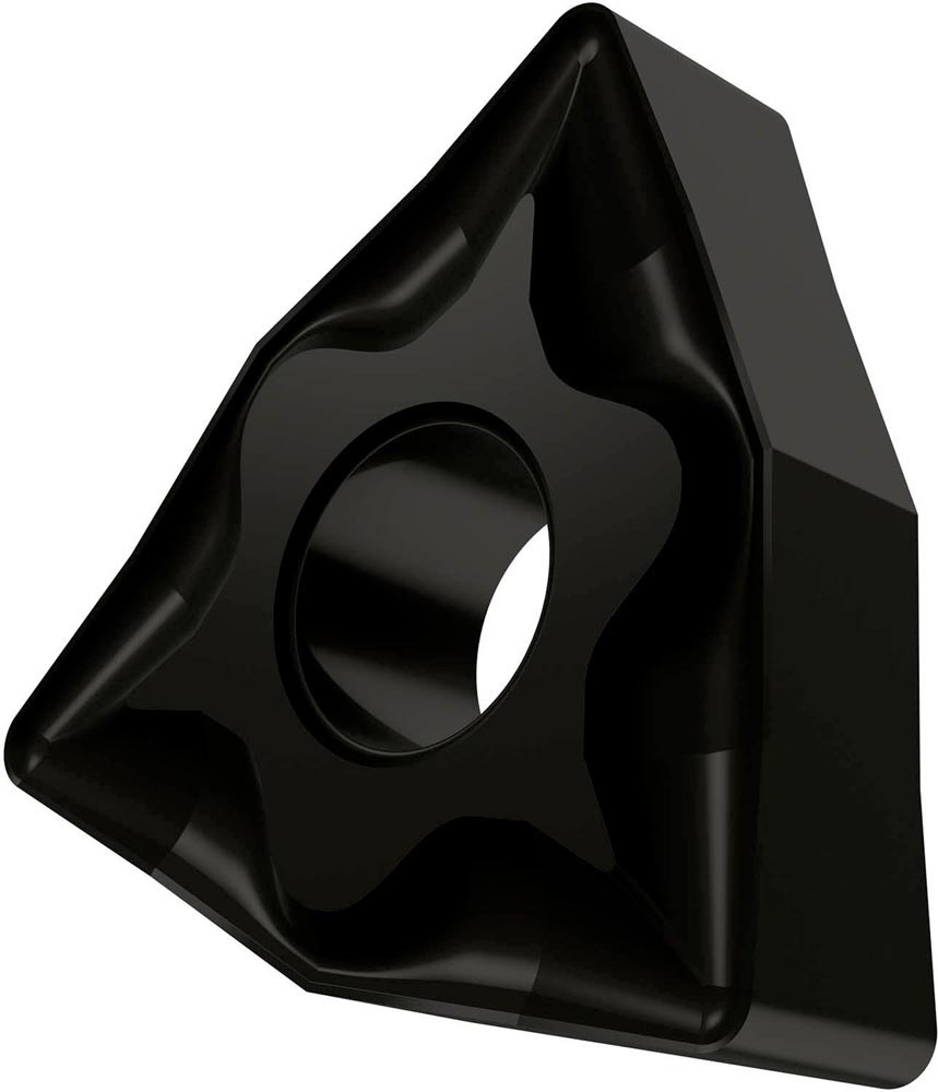 Doppelseitige negative Drehwendeschneidplatte · 80° Trigon mit Innenkreisdurchmesser von 9.525mm · 4.76mm Dick · 0.8mm Radius · Indexgenauigkeit nach ISO-Toleranzklasse-M · Spanbrecher NF mit verrundeter Schneidkante · im Substrat T9325 · MT-CVD beschichtet functionally graded WC-Co carbide in den ISO-Bereichen P15 -P35 und M10 -M30 · zum schlichten bis medium bearbeiten von Stählen und nichtrostenden Stählen