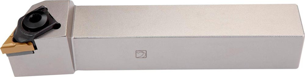 Dreh-Trägerwerkzeug multi lock zum spannen von Triangular negative Wendeschneidplatten mit einem Innenkreisdurchmesser von 9.525mm · 4.76mm Dick (ISO Bezeichnung TN.. 1604.. ) · rechte Ausführung zum 93° Stirndrehen mit abgesetzem Schaft · 20mm Werkzeughöhe x 20mm Breite x 125mm Länge für entgraten · Kegeldrehen · Kopierdrehen in einer und mehreren Richtungen und Längsdrehen mit und ohne Schulter