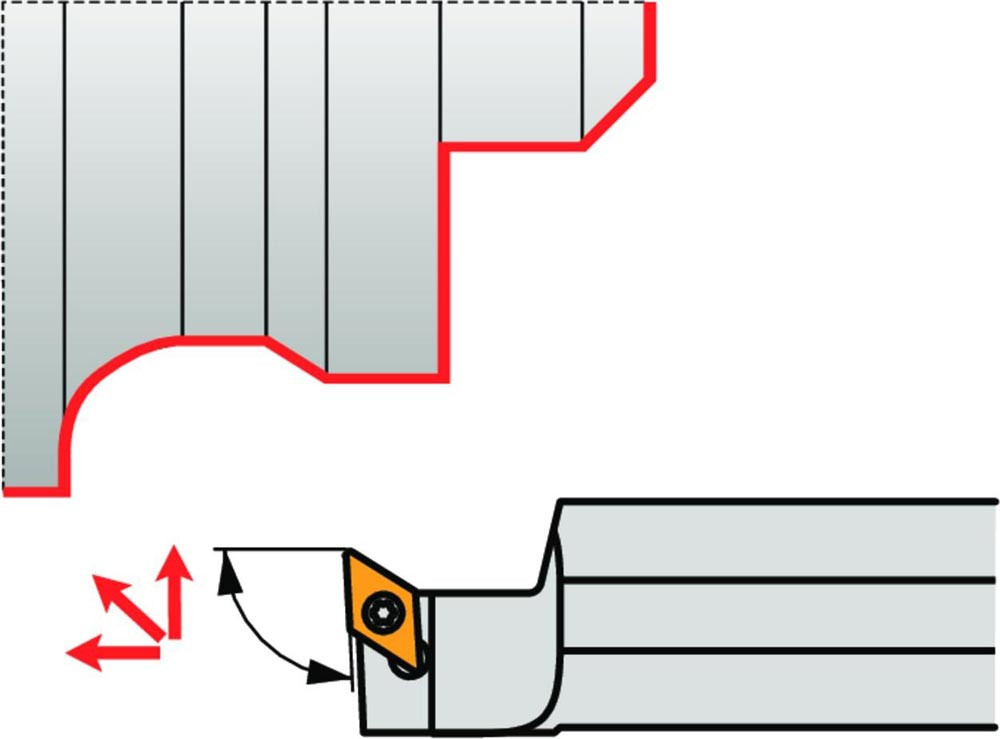 Drehmeißel mit Schraubklemmung · auch kompatibel für Langdrehautomaten zum spannen einer 55° Rhombisch positive Wendeschneidplatte mit einem Inkreisdurchmesser von 6.35mm · 2.38mm Dicke (ISO Bezeichnung DC.. 0702.. ) · linke Ausführung 93° Stirndrehen mit abgesetztem Schaft · Werkzeugstahl ohne Innenkühlungsbohrungen · 22mm diameter x 125mm Länge