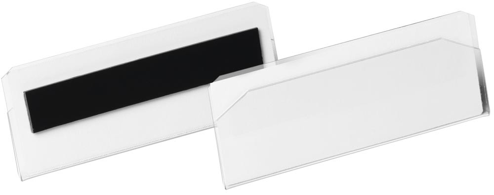· Etiketten- / Kennzeichnungstasche aus transparenter PET Hartfolie ∙ Schneller Austausch der Einsteckschilder ∙ Scannertauglich und Dokumentenecht · VE 10 Stück