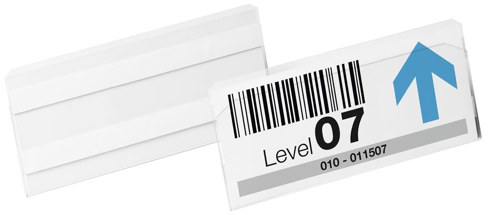 · Etiketten- / Kennzeichnungstasche aus transparenter PET Hartfolie ∙ Schneller Austausch der Einsteckschilder ∙ Scannertauglich und Dokumentenecht · VE 10 Stück