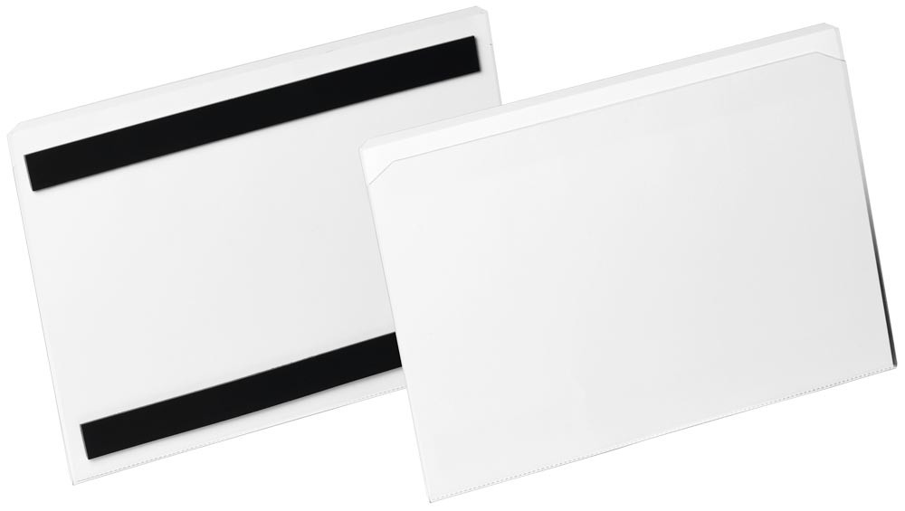 · Etiketten- / Kennzeichnungstasche aus transparenter PET Hartfolie ∙ Schneller Austausch der Einsteckschilder ∙ Scannertauglich und Dokumentenecht · VE 10 Stück