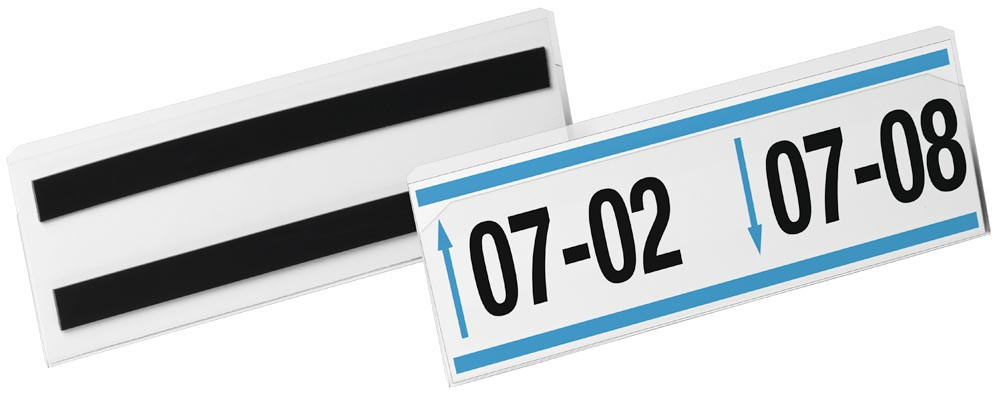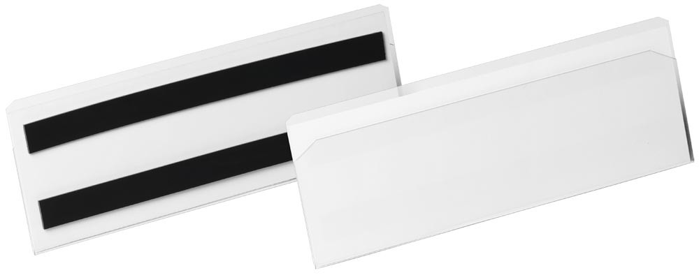 · Etiketten- / Kennzeichnungstasche aus transparenter PET Hartfolie ∙ Schneller Austausch der Einsteckschilder ∙ Scannertauglich und Dokumentenecht · VE 10 Stück