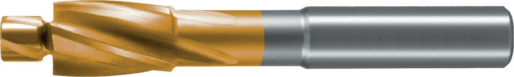HSS · TiN-beschichtet · DIN 373 · mit Zylinderschaft und festem Führungszapfen · Senkwinkel 180 ° · zur Herstellung von Senkungen für Zylinderkopfschrauben, Sechskantschrauben und Muttern · ideal zum grat- und ratterfreien Senken bei Stahl und Guss, Bunt- und Leichtmetallen sowie für Stähle <1100 N/mm² sowie rostfreie Stähle geeignet · beste Ergebnisse bei niedriger Schnittgeschwindigkeit