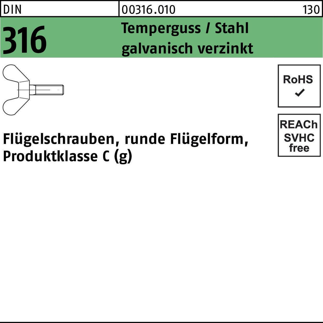 DIN 316 Temperguss/Stahl galvanisch verzinkt Flügelschrauben · runde Flügelform · Produktklasse C (g) - Abmessung: M 5 x 16 VE=S (100 Stück )