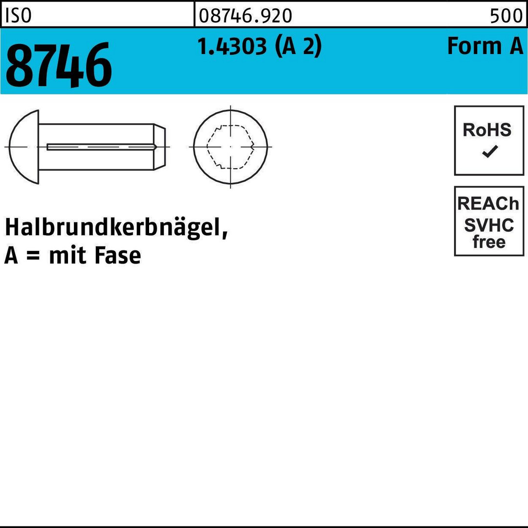 Halbrundkerbnagel ISO 8746 Fase 2x 4 Stahl 5000 Stück 8000219701