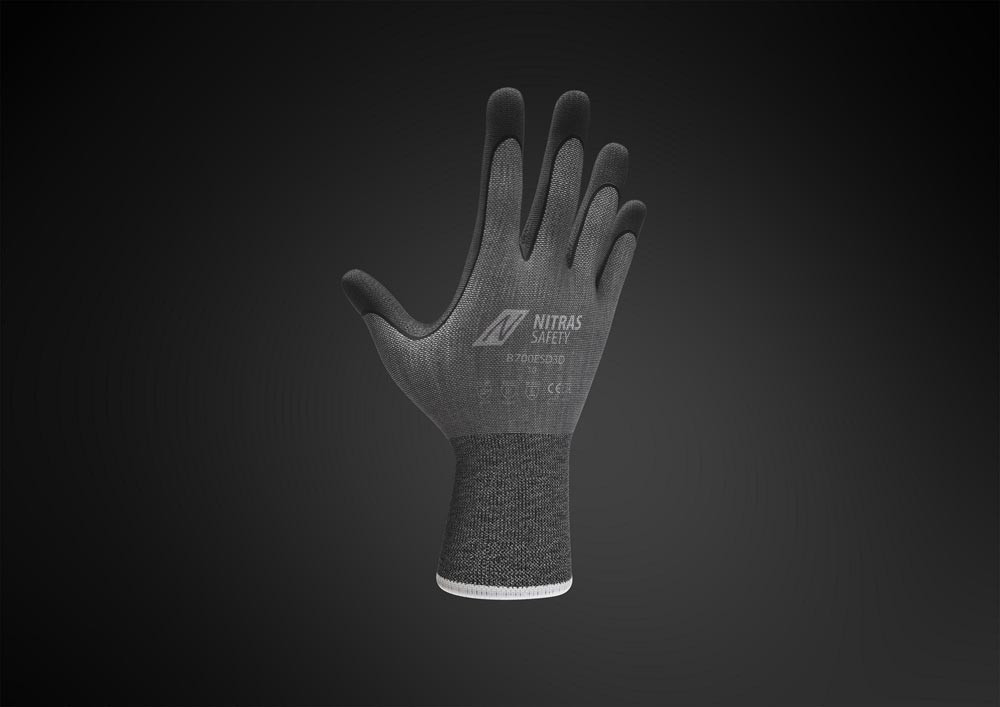 Handschuhe 8700ESD3D Größe 10 grau/schwarz EN 388/EN 407/EN 16350 PSA-Kategorie II