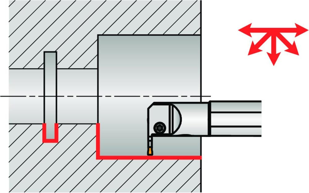 GL3-A32SGR-06-40 ist ein rechter Innendrehhalter mit Innenkühlung für GL Wendeschneidplatten mit verstärktem Körper und Schneide für Prozesssicherheit. Geeignet zum Inneneinstechen · Drehen und Profilieren.Körper für längere Standzeit oberflächenbehandelt.