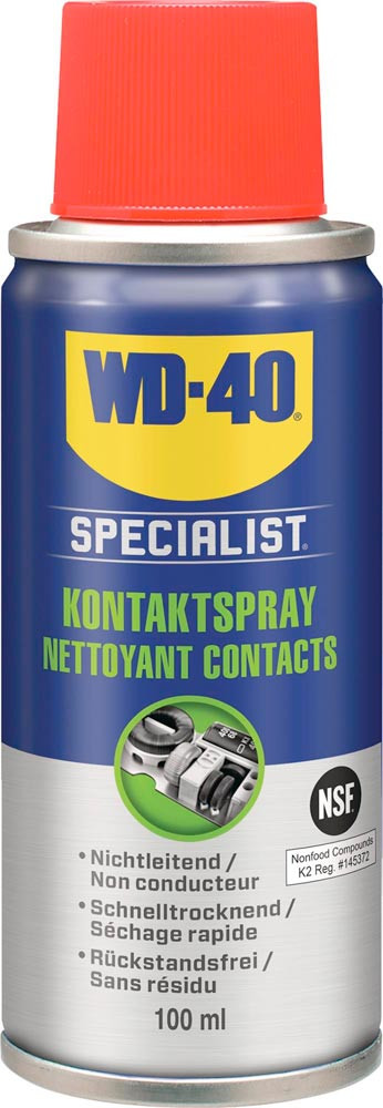 schnell wirkend · entfernt Öl, Schmutz, Flussmittel- und Oxidationsrückstände von empfindlichen elektrischen oder elektronischen Geräten · durchdringt auch schwer zugängliche Stellen und trocknet schnell, ohne Rückstände zu hinterlassen · geeignet für elektrische Geräte, Kontakte, Kunststoff und Gummi · NSF K2 registriert (Reg.-Nr. 145372)