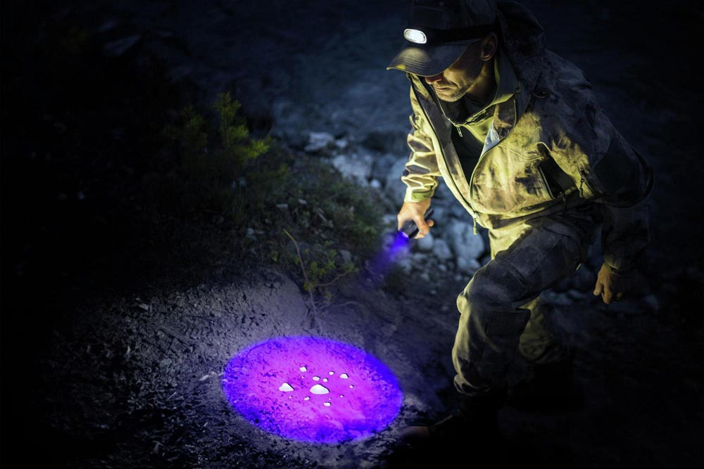 handliche LED-Aluminiumtaschenlampe mit UV Licht · UV Licht ideal geeignet für Bernsteinsuche, Hygiene und Sauberkeitskontrollen und zur Ködersuche im Angelsport · LED Taschenlampe ist optimal geeignet für den täglichen Gebrauch · sehr griffige Oberfläche mit Endkappenschalter · Helligkeit: bis zu 100 Lumen · UV Wellenlänge 395 - 400 nm · Leuchtdauer: bis zu 27 Stunden