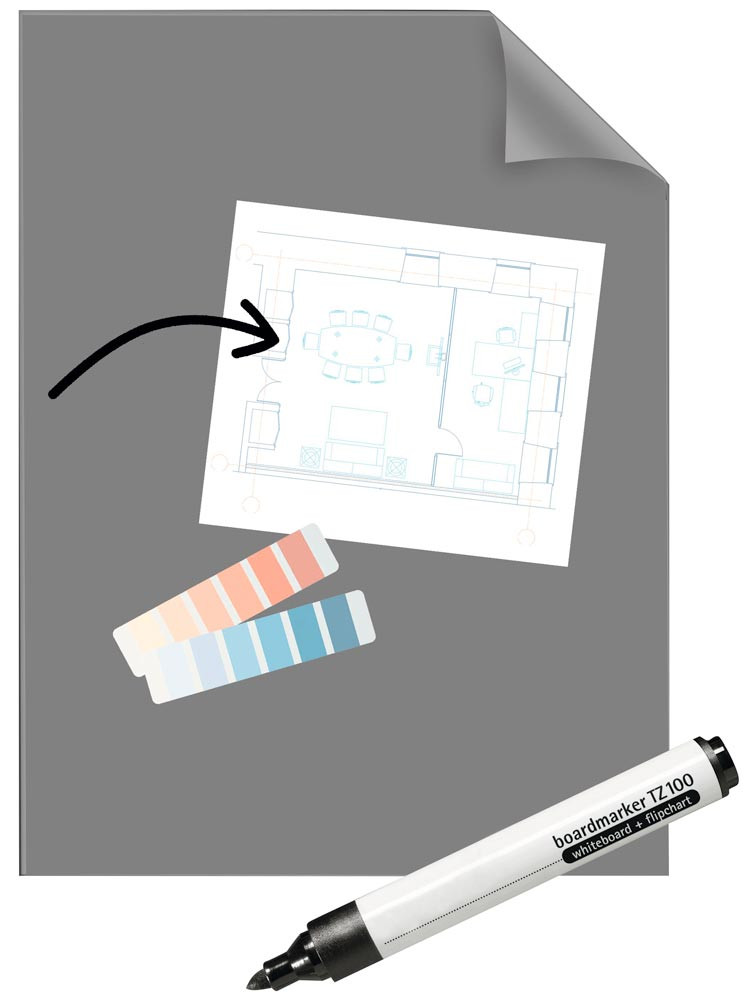 · Schafft eine sofort einsatzfähige, flexible Schreibfläche · Folienrolle mit 25 reißfesten Folienblättern · Rollenbreite 600 mm · Perforiert nach 800 mm · Dank elektrostatischer Eigenschaften auf fast jeder glatten Oberfläche haftend · Moderationskarten und Notizzettel haften ohne Hilfsmittel an der Oberfläche · Inkl. passendem Marker · VE 4 Rollen