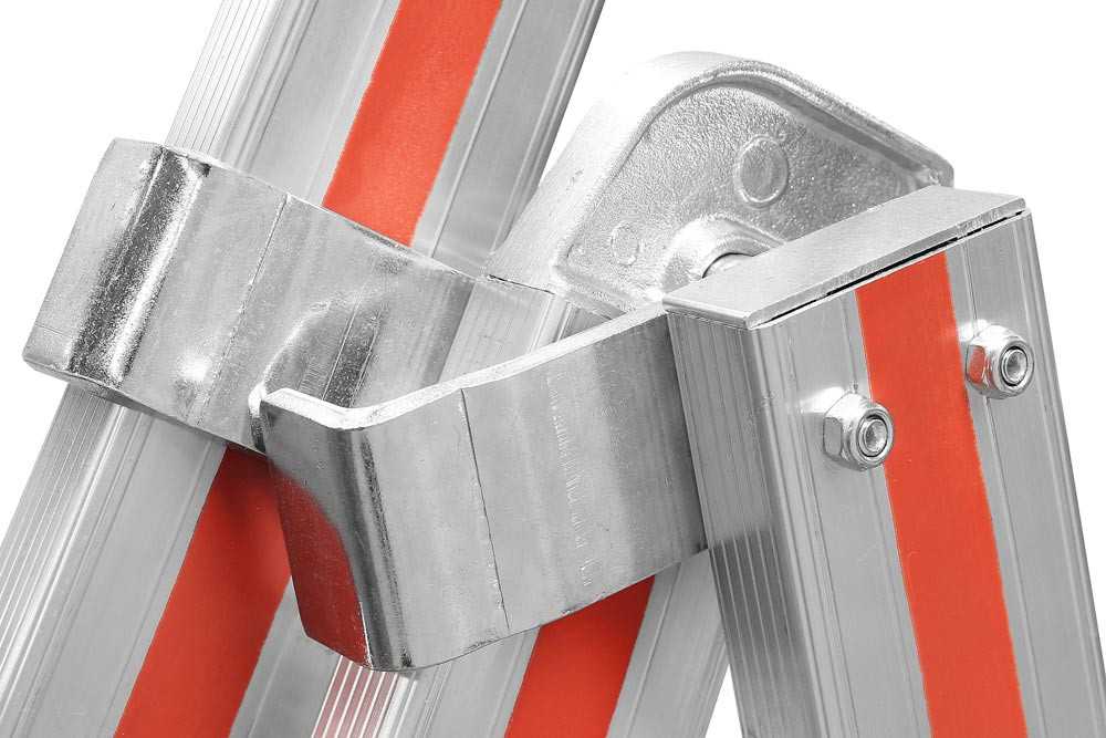 ∙ Kombinierbare Steh- und Schiebeleitern mit vielen verschiedenen Verwendungsmöglichkeiten ∙ Hohe Standsicherheit durch stabile Fußverbreiterung ∙ Hochfeste Perlongurte ∙ Starre Strebe als Spreizsicherung ∙ Aufstellen der Leiter in Treppenstellung mit Zubehör ist möglich (bis Größe 3x10) ∙ Hohe Rutschsicherheit durch ausgeprägte Profilierung der Sprossen ∙ Leiterfüße mit Holm verpresst ∙ Massive Stahlbeschläge · Zulässige Belastung 150 kg · Entspricht EN 131