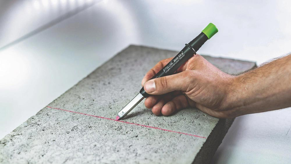 für Zimmermannsbleistift Pica BIG Dry Art.-Nr. 6001635 · jeweils 12 Minen im praktischen Kunststoffetui · Rechteckminen mit 2 x 5mm Querschnitt · 150 mm lang · zum Nassschneiden von Pflaster und Stein