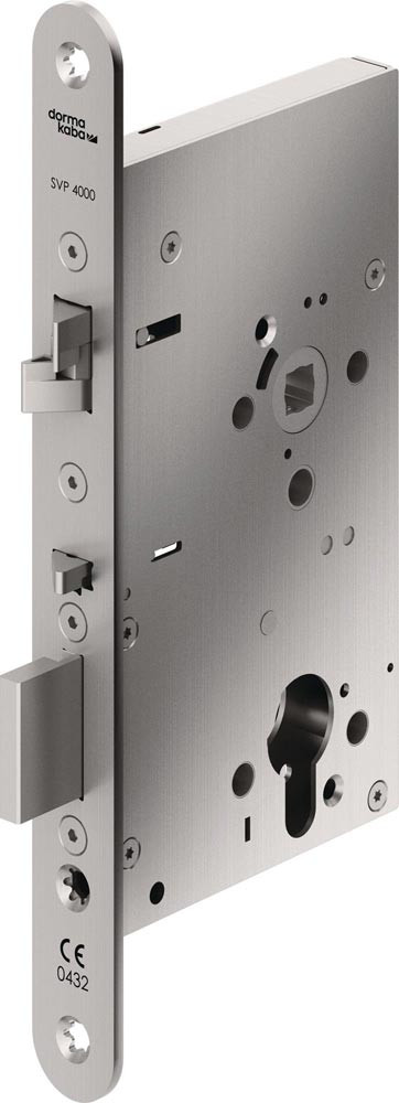 für einflügelige Holz- und Stahltüren · selbstverriegelndes Panikschloss mit Rückmeldung durch integrierte Überwachungsfunktion sowie Wechselfunktion zur Entriegelung über Schlüssel von außen · mit optimierter mechanischer und elektrischer Ablaufsicherung · Panikentriegelung über Drücker nach EN 179 oder Panikstange nach EN 1125, Einbruchschutz bis RC2 in geeigneten Türsystemen erreichbar · mit Zustandsabfragen zur Detektion von "verriegelt" (> 90 %), "entriegelt" (< 10 % des Riegelweges), "Tür auf/zu" über Steuerfalle sowie "Drückerbetätigung/Panikentriegelung" und "Zylinderkontakt" · Kontaktbelastbarkeit: 30 V DC, 100 mA · Zweipunktverriegelung durch Federvorspannung nach Türschliessung · Universal-Steuerfalle (24-mm-Stulp-Varianten DIN L/R verwendbar) · Stahlriegel 20 mm ausschließend, 9 mm Vierkantnuss · korrosionsgeschützter Schlosskasten in DIN-Abmessungen, Stulp und zum Lieferumfang gehörendes Schliessblech aus Edelstahl · mit Stulp und Schließblech aus Edelstahl · Universal-Steuerfalle (24 mm Stulp-Varianten DIN-links und DIN-rechts verwendbar) · Betriebsarten direkt per analoger Ansteuerung, mit externer Steuerung und SVP-S 4x (Stand- Alone mit voller Funktionalität) oder per DCW®-BUS an TMS, Saferoute und ED 100 / 250 möglich · SVPs sind kompatibel mit Zylindern aller Bauarten, auch Elektronik- und Freilaufzylindern