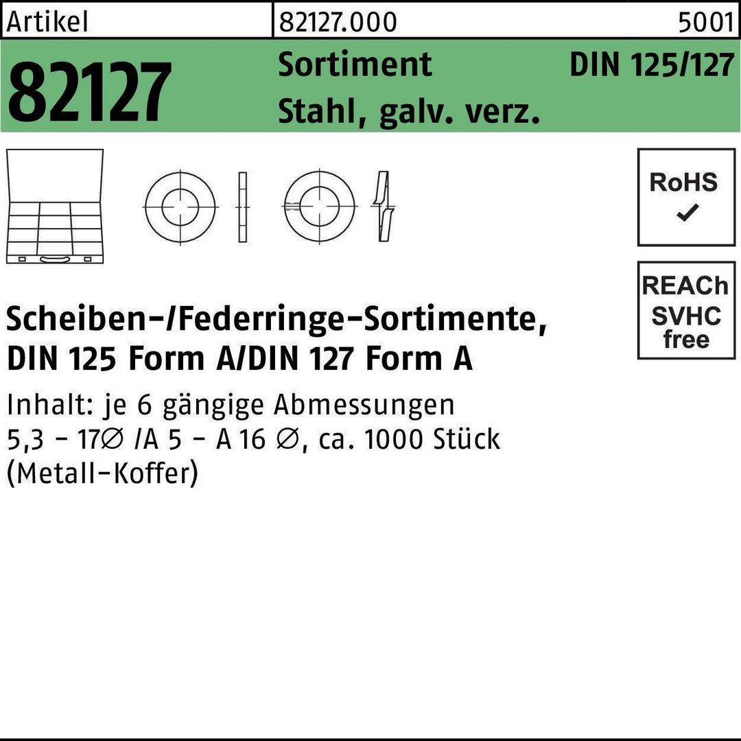 Artikel 82127 Sortim. DIN 125/127 Stahl · galv. verz. Scheiben-/Federring-Sortimente · DIN 125 Form A/DIN 127 Form A - Abmessung: DIN 125 / 127 VE=S (1 Stück )
