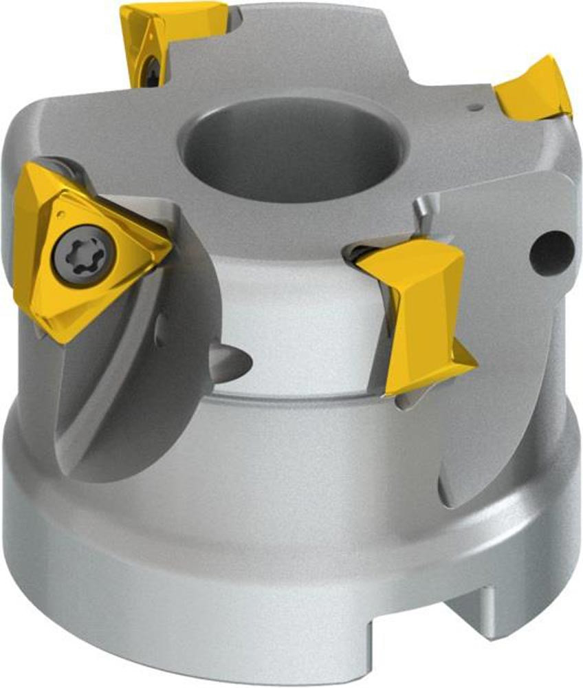 Eck-und Planfräser mit doppelt negativer Geometrie welche 4 aus TNGX 1606.. doppelseitige Wendeschneidplatte · Schneiddurchmesser 50mm mit 90° Anfahrwinkel und 22mm Bohrung gemäß DIN 8030-A · 40mm Einsatzlänge · durchgehende Kühlung und ungleicher Teilung zum Planfräsen · flachen Schulterfräsen · flachen Nutfräsen und Spiralfräsen in vorbearbeiteten Löchern