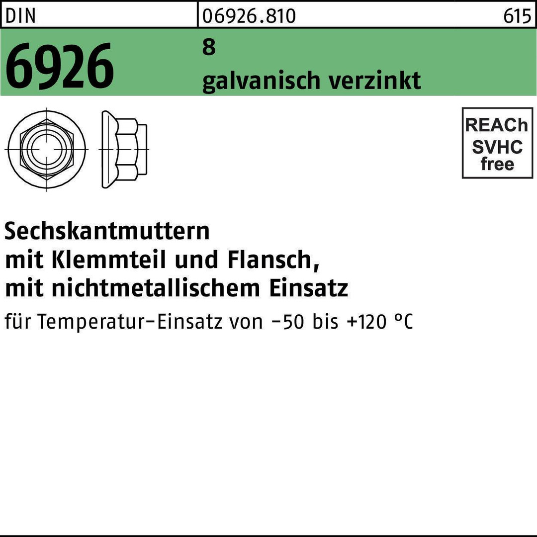 Sechskantmutter DIN 6926 Klemmteil/Flansch M6 8 galv.verz. 100 Stück 8000208739