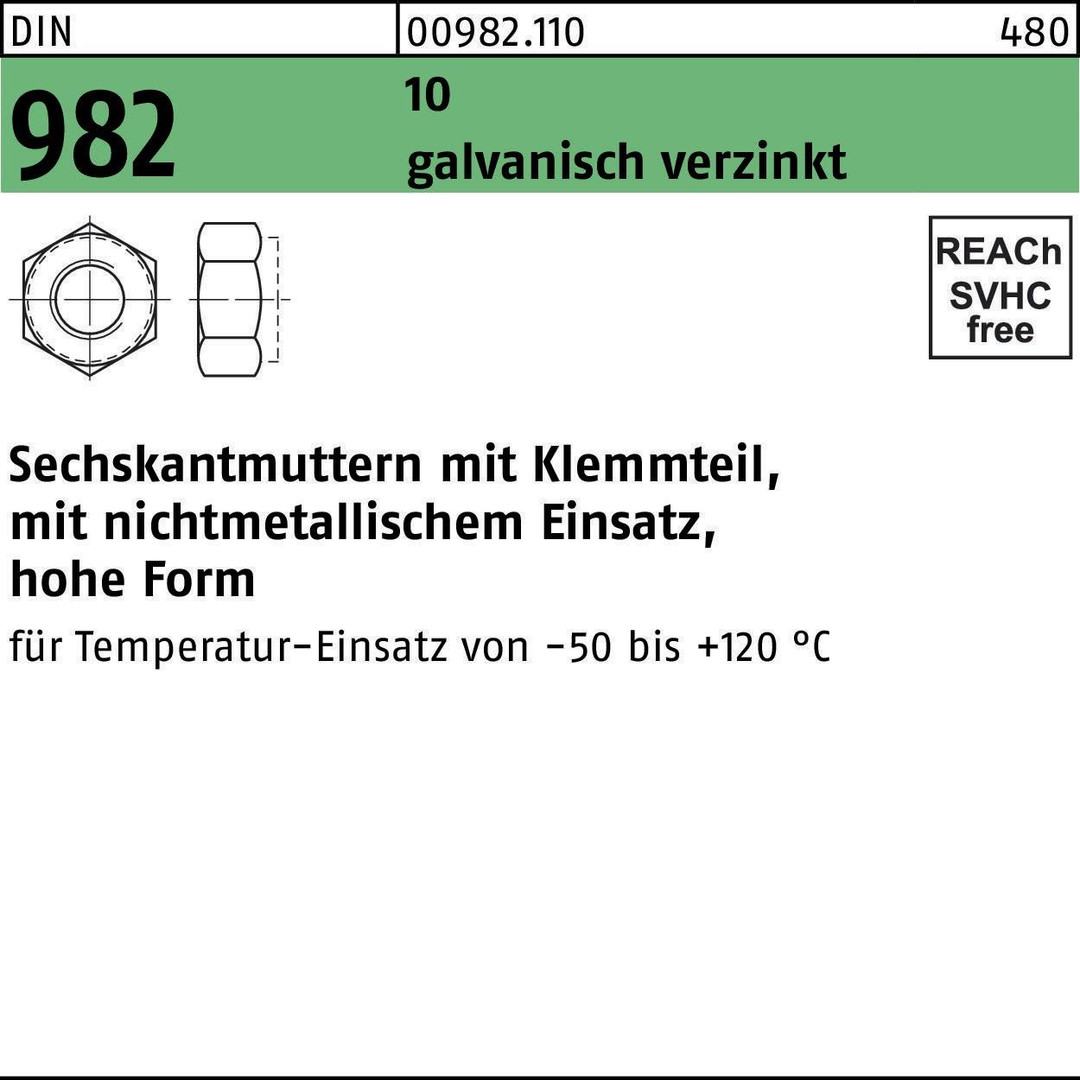 DIN 982 10 galvanisch verzinkt Sechskantmuttern mit Klemmteil · mit nichtmetallischem Einsatz · hohe Form - Abmessung: M 16 VE=S (50 Stück )