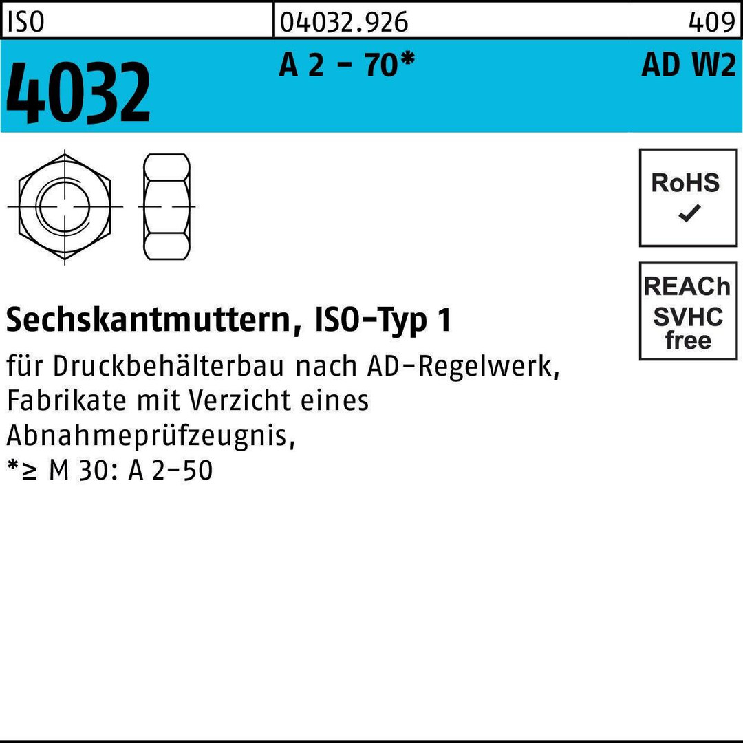 ISO 4032 A 2 - 70 AD W2 Sechskantmuttern - Abmessung: M 27 VE=S (10 Stück )
