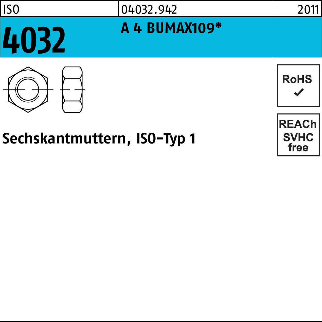 Sechskantmutter ISO 4032 M16 A 4 BUMAX109 25 Stück BUFAB
