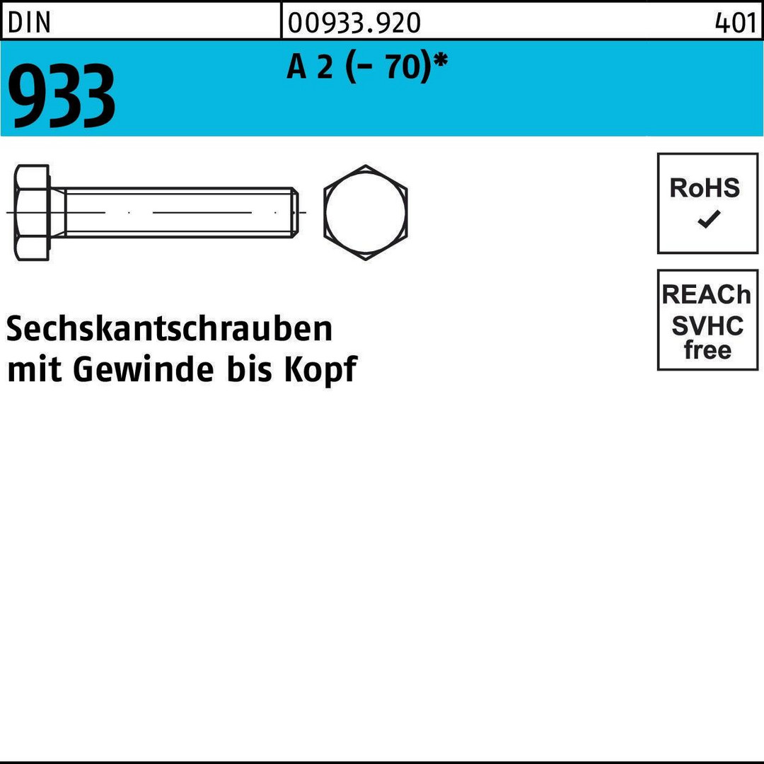 DIN 933 A 2 - 70 Sechskantschrauben mit Gewinde bis Kopf - Abmessung: M 3 x 25* VE=S (100 Stück )