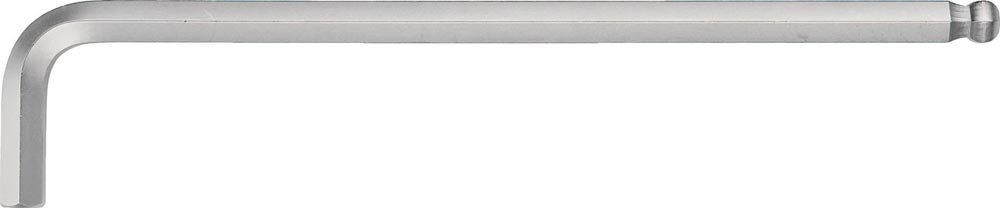 mit Kugelkopf · lang, Kugelkopf · S2-Stahl · matt verchromt · abgewinkelt · langer Schenkel mit Kugelkopf · ermöglicht das Schrauben bis zu einem Winkel von 25° · kurzer Schenkel gefast · In Anlehnung an ISO 2936 L