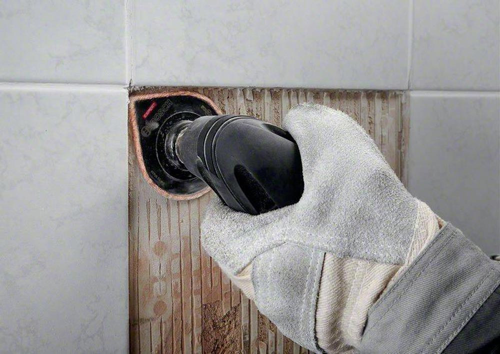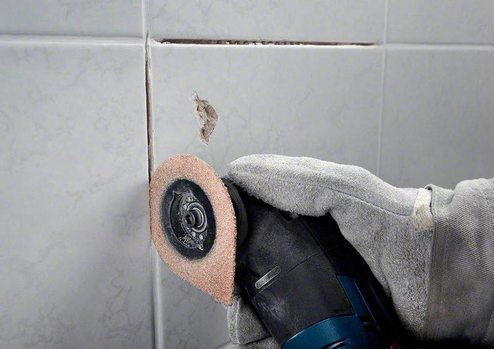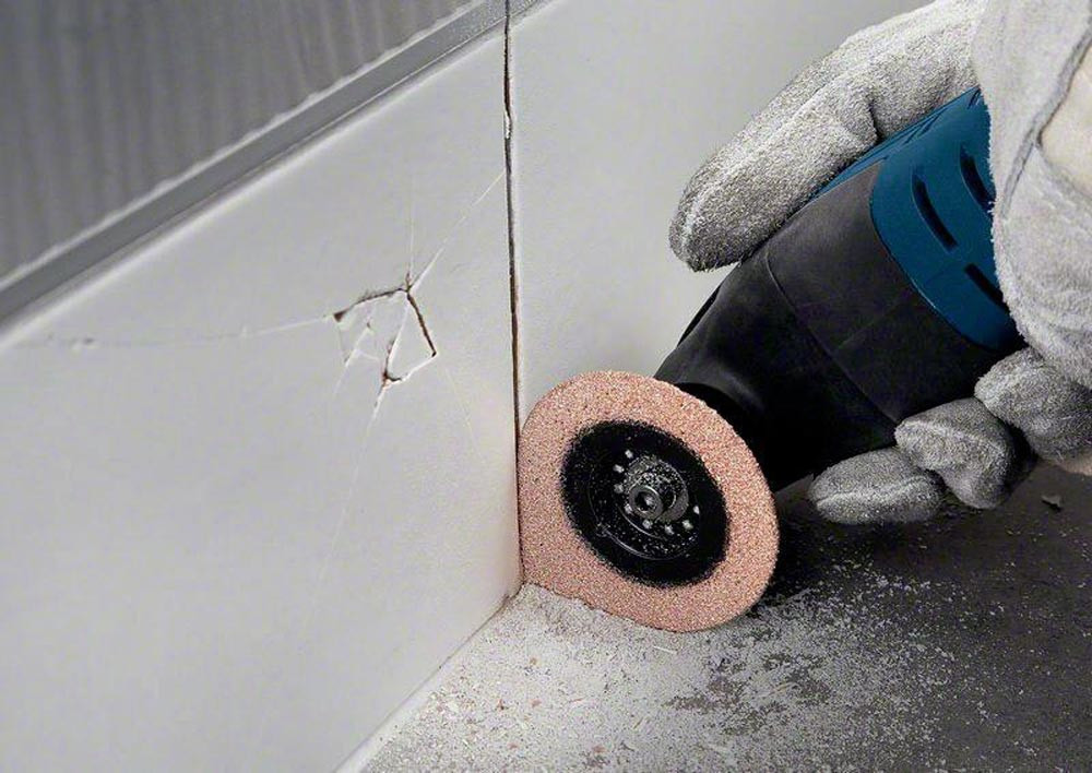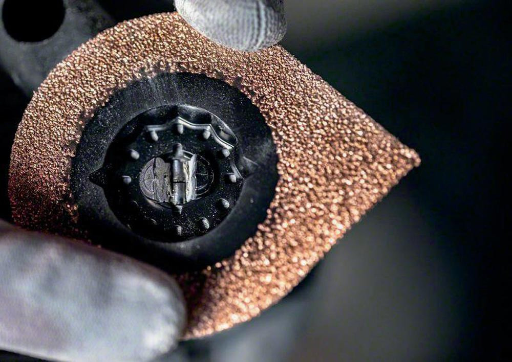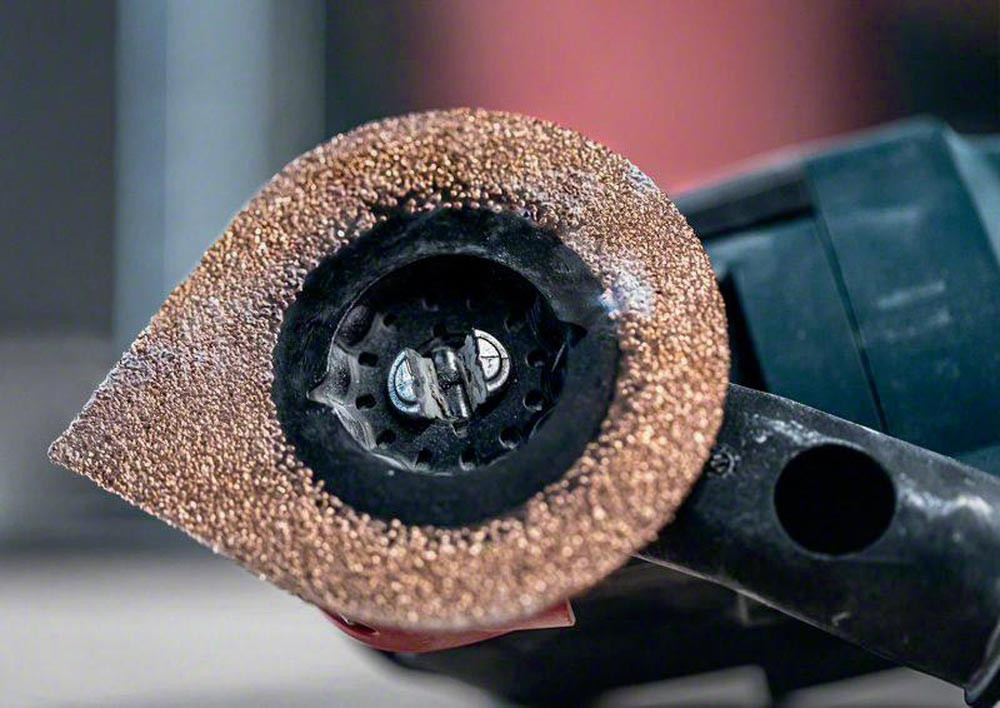 Mehrzwecknutzung in Fliesen · mit seinem hochwertigen Carbide-Korn kann der Mörtel um eine Fliese mühelos herausgeschnitten werden und erreicht mit seiner Spitze selbst schwer zugängliche Ecken · auch als Schleifplatte verwendbar, um den alten Mörtel hinter der Fliese zu entfernen · Starlock Aufnahme für maximale Kraftübertragung