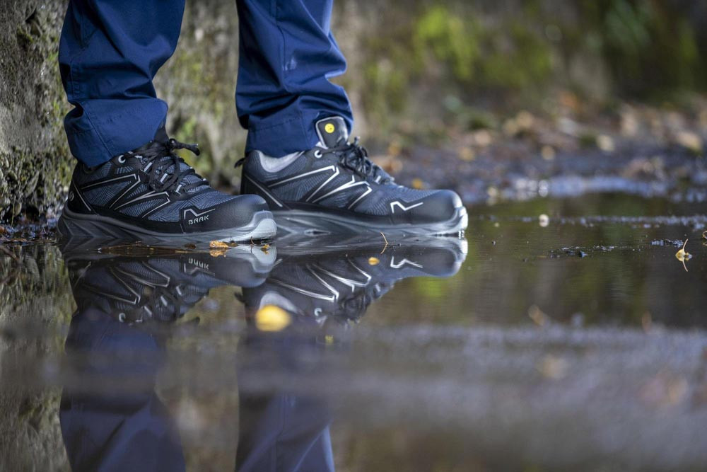 nach DIN EN ISO 20345:2024 · S3S FO LG SR ESD · Textilmaterial mit TPU-Applikation · Sandwich-Textilfutter · Composite-Flexkappe · Baak Go&Relax-System · Balance-Zone · ESD Softstep+ Einlegesohle · PU/PU-Sohle · textiler Durchtrittschutz · DGUV Regel 112-191 · Weite 11