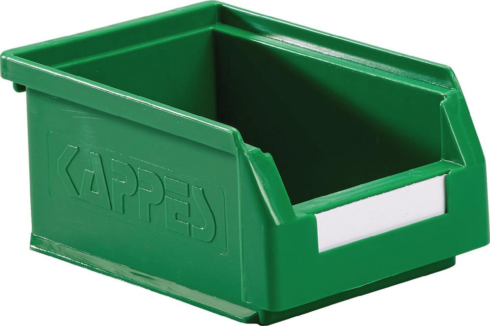 Sichtlagerkasten mit Aufhängeleiste, BxH 140x130 mm, Tiefe außen/innen 230/200 mm, Farbe grün E863510