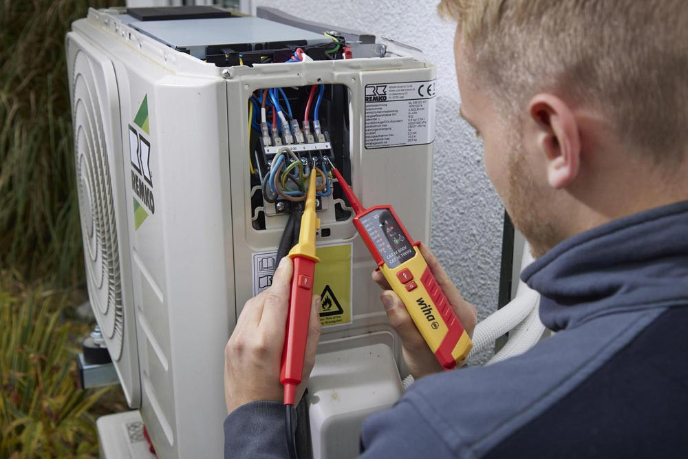 schnelle Einhandprüfung an Netzsteckdosen durch 19 mm Kontaktabstand · integrierte Taschenlampenfunktion sorgt für optimale Lichtverhältnisse. · Überprüfung der FI-Auslösung durch zwei Lasttasten · Spannungsprüfung im komfortablen Messbereich von 12 bis 1.000 V AC bzw. 1.500 V DC · zusätzlich bietet er die Möglichkeit der Durchgangsprüfung der optischen Drehfeldprüfung, der Einpolprüfung sowie der automatischen Polaritätserkennung · Messergebnisse sind dank einer LED-Anzeige einfach ablesbar ·ein zusätzlicher Signalton signalisiert den Stromfluss bei der Durchgangsprüfung · außerdem kann die Prüfung an Steckdosen komfortabel mit Hilfe des integrierten Abstandhalters einhändig durchgeführt werden · gleichzeitiges Drücken der Tasten an beiden Griffen der Prüfspitzen ermöglicht die Funktionsprüfung des FI-Schutzschalters durch das Zuschalten einer Last · gemäß den Messkategorien CAT III bis 1.000 V und CAT IV bis 600 V bietet der Spannungs- und Durchgangsprüfer maximale Sicherheit für Arbeiten im Bereich der Gebäudeinstallation sowie direkt an Quellen der Niederspannungsinstallation. IEC/EN 61243-3:2014 · IP64
