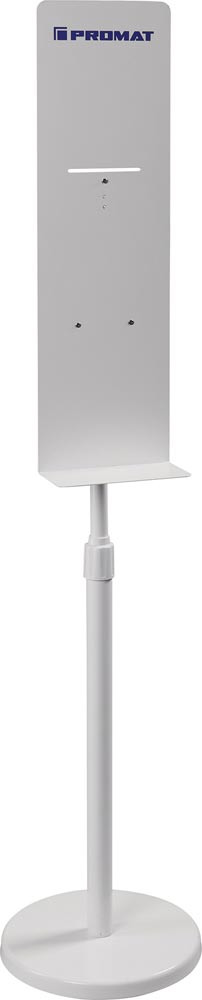 mobile Spendersäule aus Metall · weiß · vorgebohrte Löcher (passend für Promat-Spender 6420518 + 6420519), kinderleichte Montage · Höhe individuell einstellbar · Einsatz: perfekt zur Desinfizierung der Hände vor Eingangsbereichen wie z.B. Büros, Industriehallen, Restaurants, Ladengeschäften, Schwimmbädern, Kinos, Theater, Ämtern oder anderen öffentlichen Einrichtungen, etc.