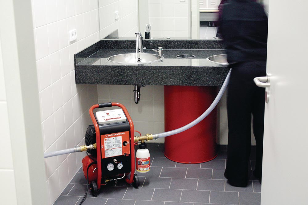 ein Gerät - drei Anwendungen für Sicherheit und Energieeffizienz: Spülen von Fußbodenheizungen / Heizkreisen, von Trinkwasserleitungen gemäß DIN 1988-2/EN 806 · Desinfizieren von Trinkwasserleitungen · zwei Spülstufen (Impulsfunktion und Dauerluft) für ein gutes Spülergebnis · leichte Bedienung durch übersichtliches Bedienfeld · kompakte Abmessungen für einfaches Handling auf der Baustelle · Chemische Reinigung durch ROCLEAN Zubehör möglich