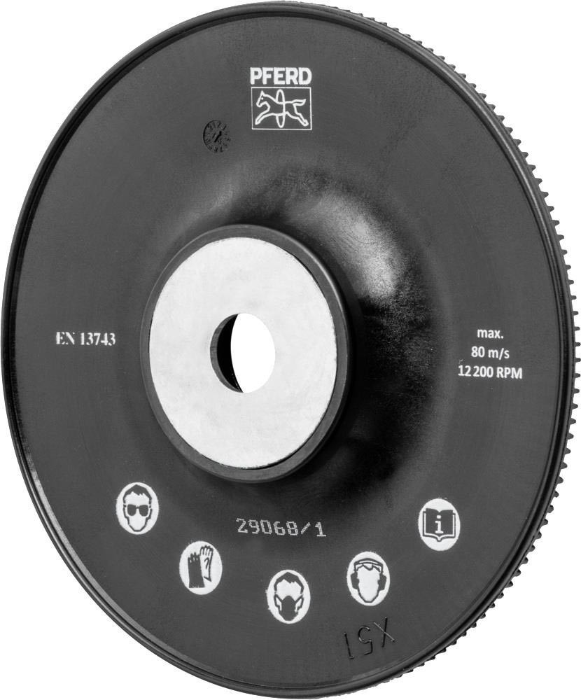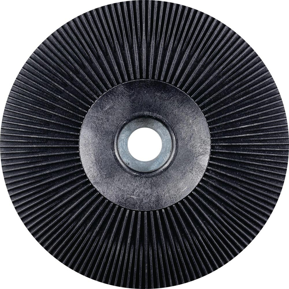 Hochleistungs-Stützteller mit hoher Standzeit durch abriebfesten, glasfaserverstärkten Kunststoff · besonders kühlen Schliff aufgrund von radial verlaufenden Kühlrippen sowie hoher Abtragsleistung der Fiberschleifer durch eine stabile, starre Ausführung