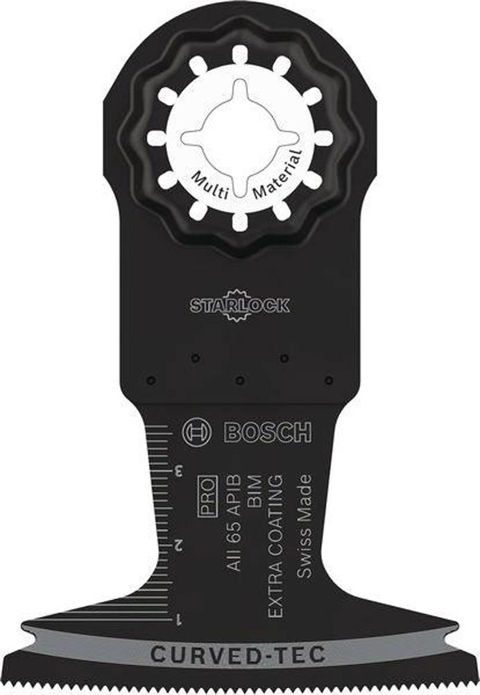 zum schnellen Schneiden von Holz, weichem Metall und Kunststoff · für Tauchschnitte, Bündigschnitte und präzise Ausschnitte · Bi-Metall Blatt kombiniert harte, beschichtete Zähne mit flexiblem Blattkörper · Curved-Tec-Design: ideal für ausrissfreie Tauchschnitte