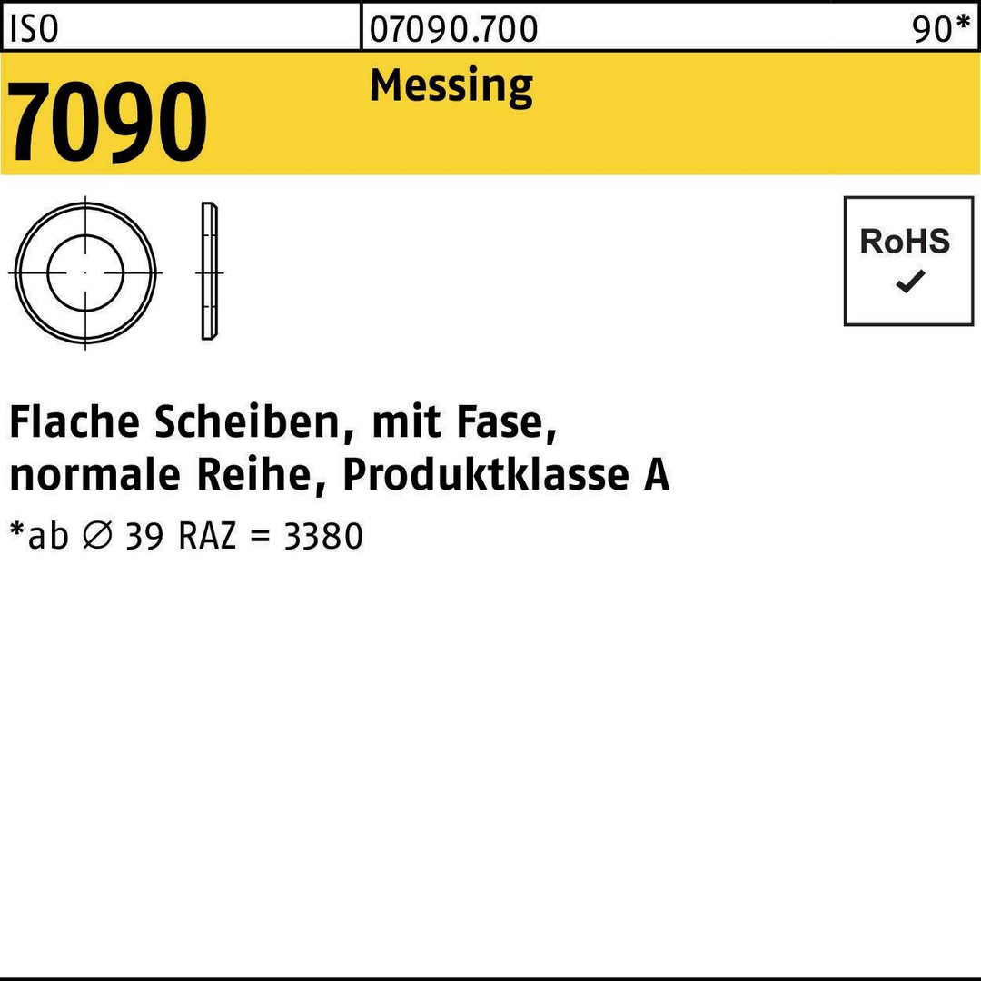 ISO 7090 Messing Flache Scheiben · mit Fase normale Reihe · Produktklasse A - Abmessung: 39 VE=S (1 Stück )