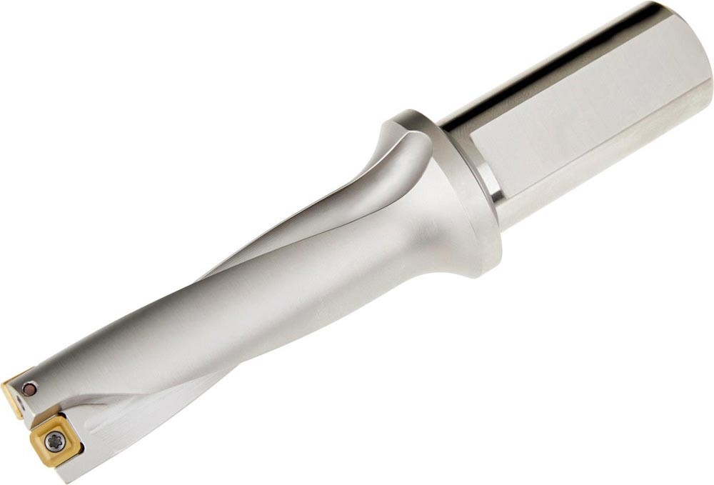 Wendeschneidplattenbohrer zum einsetzen von einer XPET 0703.. Wendeschneidplatten als Zentrumschneide und einer SCET 0703.. Wendeschneidplatte als Außenschneide · Bohrdurchmesser 23mm in Kombination mit EP253253 · geeignet für eine radiale Verstellung von -0.35 bis +0.50mm · mit einem 25mm abgeflachten Zylinderschaft nach ISO 9766 und Innenkühlung für maximale Bohrtiefen bis 3 x D